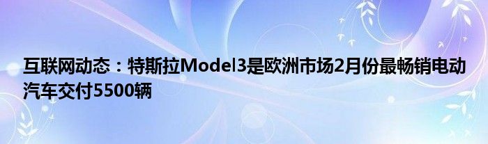 互联网动态:特斯拉Model3是欧洲市场2月份最畅销电动汽车交付5500辆