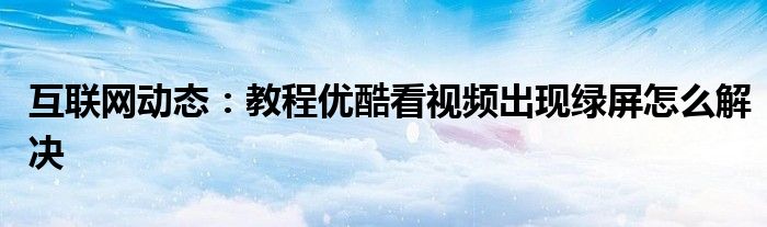 互联网动态:教程优酷看视频出现绿屏怎么解决