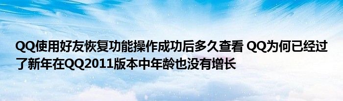 QQ使用好友恢复功能操作成功后多久查看 QQ为何已经过了新年在QQ2011版本中年龄也没有增长