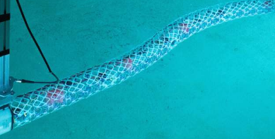 在团队制作的其中一个装置中,体素首尾相连成一长排,形成一米长的蛇状结构。主体由四个部分组成,每个部分由五个体素组成,中心有一个致动器,可以拉动连接到两侧两个体素中的每一个的电线,收缩它们并导致结构弯曲。然后将20个单元的整个结构覆盖有肋状支撑结构,然后是紧密贴合的防水氯丁橡胶表皮。研究人员将该结构部署在麻省理工学院的拖曳水箱中,以显示其在水中的效率,并证明它确实能够产生足够的向前推力,以使用起伏运动推动自己前进。