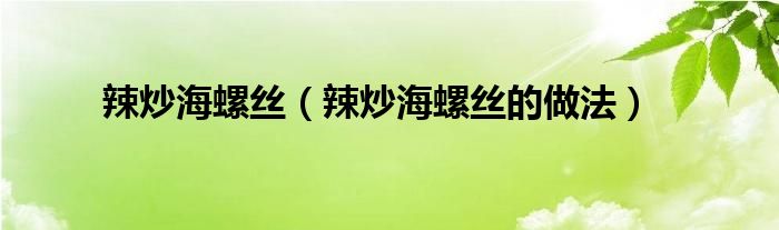 以上就是辣炒海螺丝的做法这篇文章的一些介绍,希望对大家有所帮助。