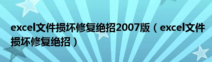 excel文件损坏修复绝招2007版(excel文件损坏修复绝招)