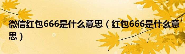 以上就是红包666是什么意思这篇文章的一些介绍,希望对大家有所帮助。
