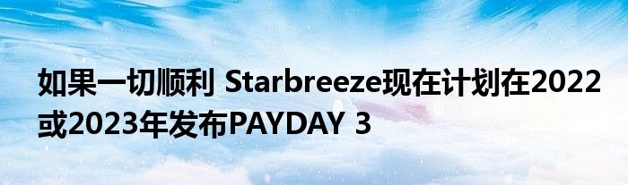 如果一切顺利 Starbreeze现在计划在2022或2023年发布PAYDAY 3
